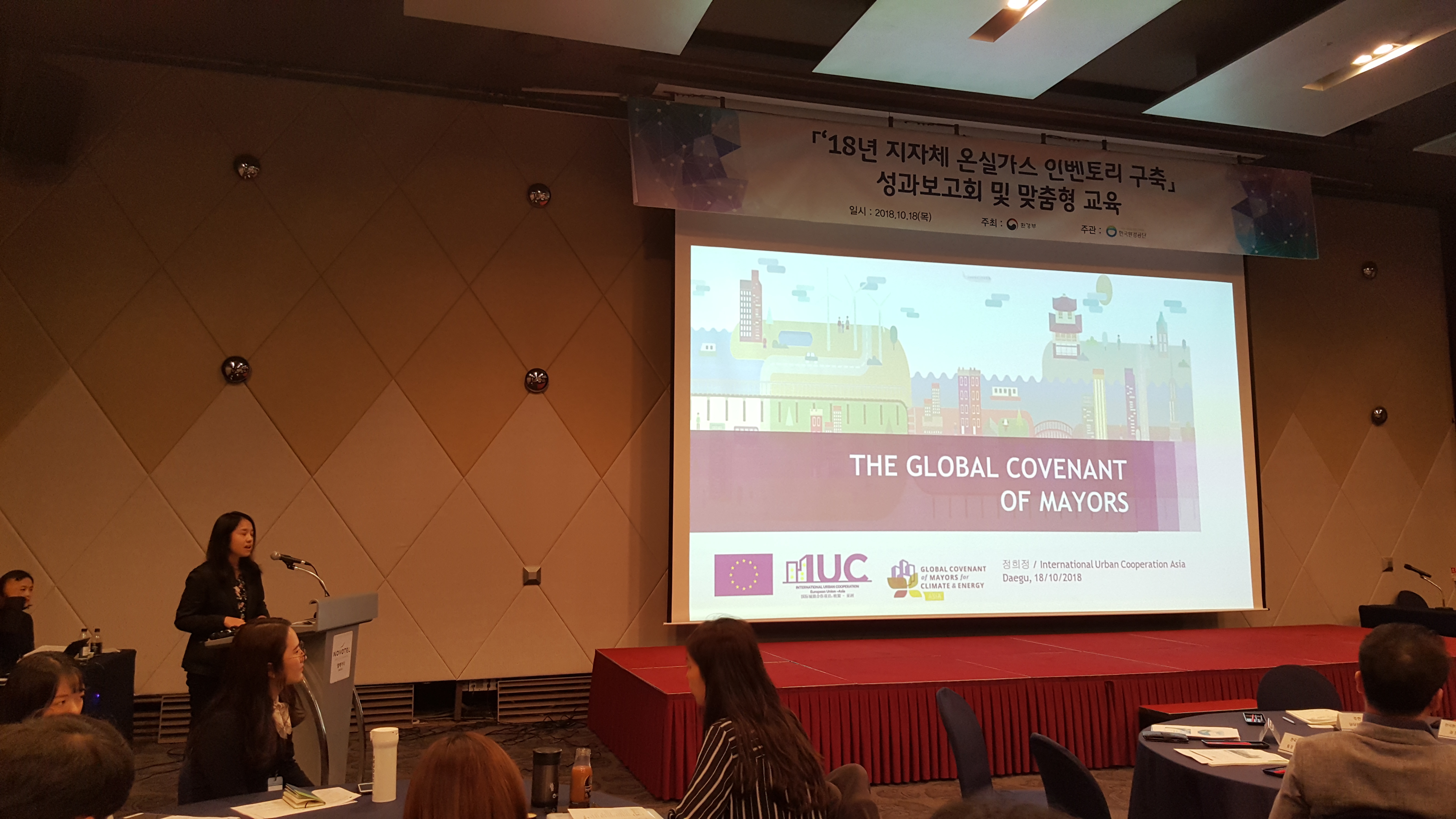 Daegu, 18. October 2018. The IUC Asia project was invited to explain the Global Covenant of Mayors (GCoM) during a training for city practitioners hosted by Daegu City Council, the Ministry of Environment (MoE) and the Korean Environmental Corporation KECO.