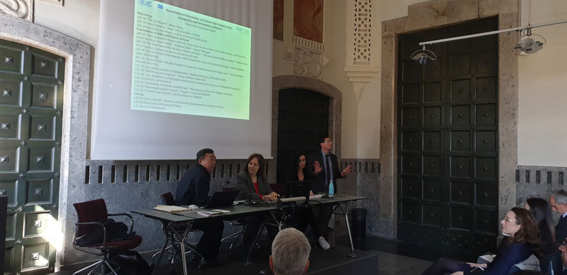 In the framework of the European project IUC Asia International Urban Cooperation, and following the exploratory mission in China in November 2018 and the High Level Forum on Policy Cooperation in Brussels on the 9th of April, a round table on the topics of Smart City and Innovation was organized on the 12th of April by the Open City IOT Smart Lab of Rome. The main goal of the round table has been the definition of possible concrete pilot projects to be jointly implemented between companies and universities from the city of Rome and Chinese cities and over 100 participants from business, academia and institution, including a delegation of 37 Chinese cities and institutional representatives met in Rome. The round table was opened by Flavia Marzano, smart city councilor of Rome, and Hou Gang, vice mayor of the city of Liuzhou, who illustrated the main activities of the cities of Rome and Liuzhou on the theme of smart city.