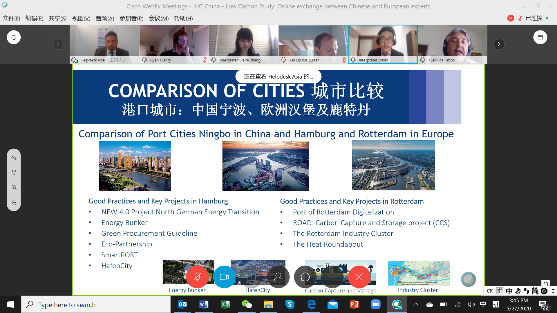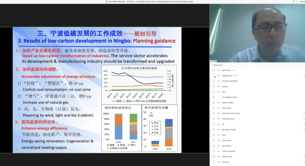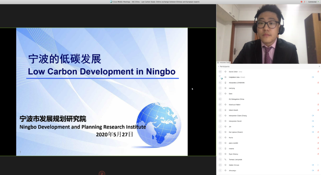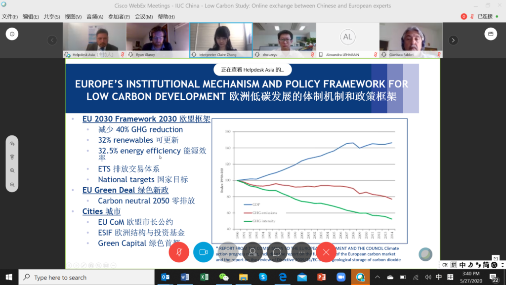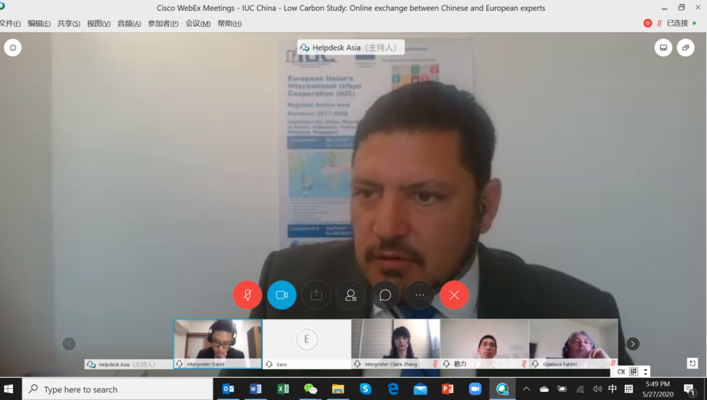 The IUC-Asia programme held an online session today to present its progress on the ongoing EU-China Low Carbon City Study, along with case studies of several cities. On the call were senior experts from both China and Europe. The study is being jointly drafted by the IUC-Asia project and experts of China’s National Center for Climate Change Strategy and International Cooperation (NCSC). Today’s online session was a stepping stone to the onsite conference foreseen for September 2020 in China (TBC).