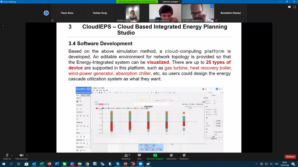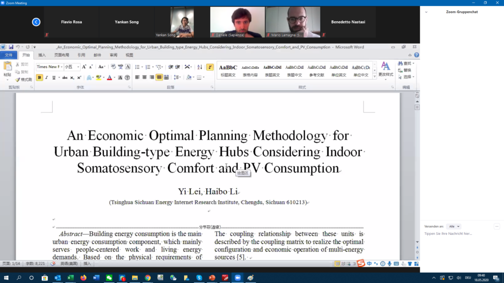 Experts from the Sichuan Energy Internet Research Institute (EIRI) at Tsinghua University and of two departments from Rome’s University Sapienza (CITERA – Interdepartmental Center for Territory, Building, Restoration, Environment and theDepartment of Planning, Design, and Technology of Architecture) held an online meeting to identify concrete research topics, potential financial sources and possible testbeds in cities. The meeting was a follow-up to the last week’s one.