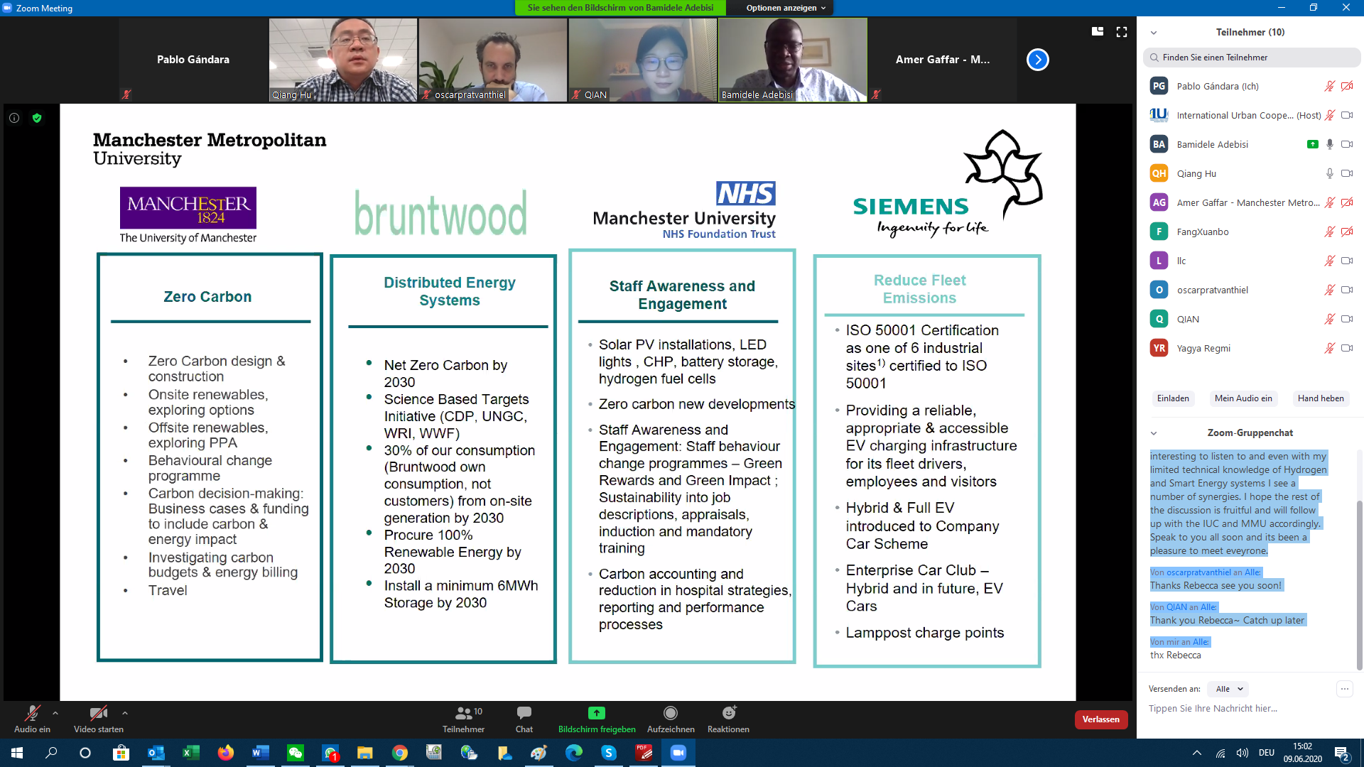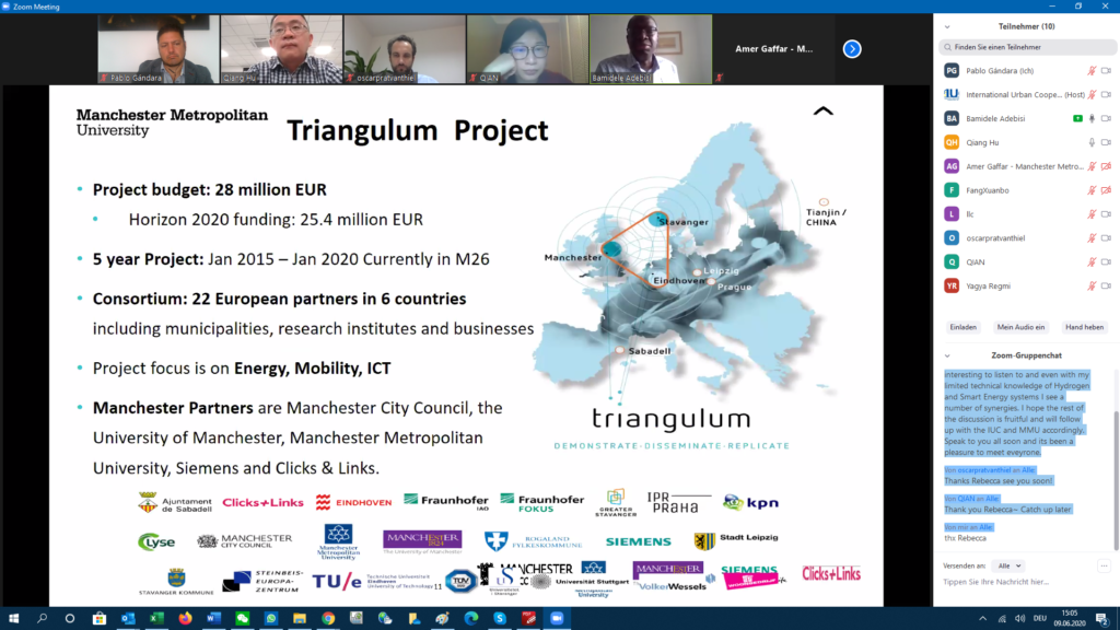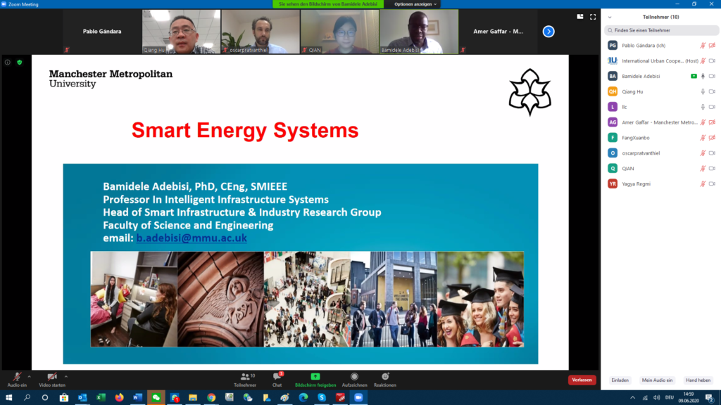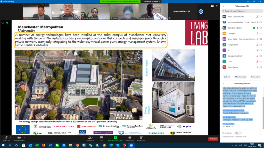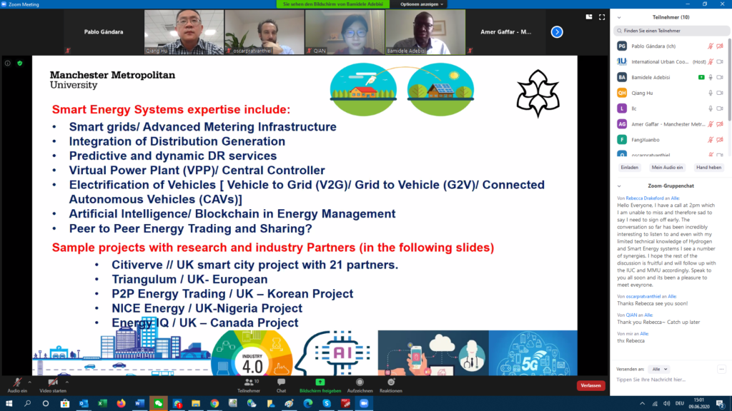 The IUC Asia project hosted today the first online meeting between Manchester Metropolitan University (MMU) and Tsinghua University Chengdu EIRI Institute on the topic of smart grids, energy sector technologies and hydrogen. The event was facilitated by Rebecca Drakeford from MIDAS – Manchester Investment and Development Agency Service.