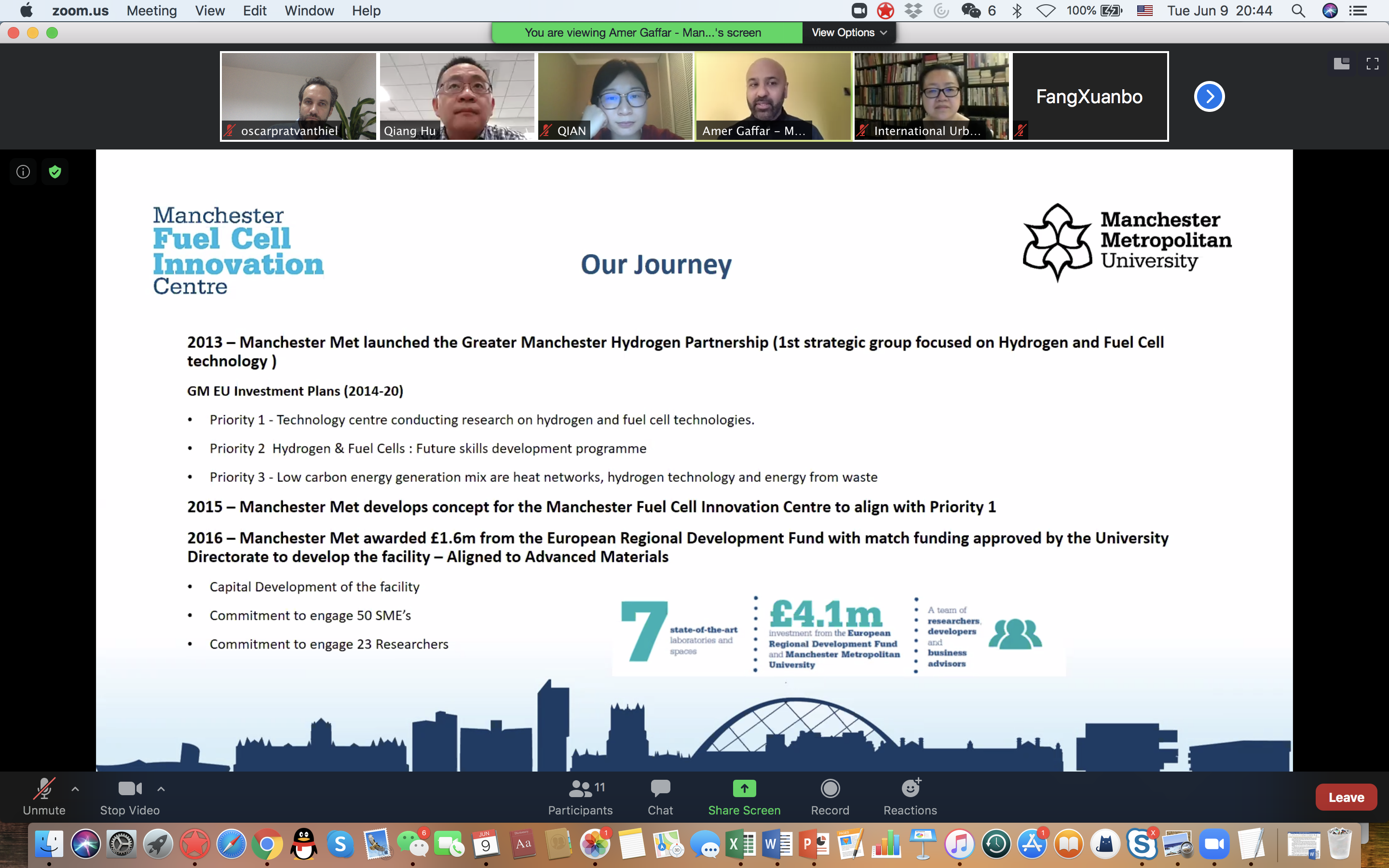 Manchester Fuel Cell Innovation Centre (MFCIC), supported with 4.1 Mio GBP from European Regional Development Fund (ERDF) and Manchester City Council, introduced its research priorities, the future skills development programme, and low carbon energy generation mix investigations. The centre engages with over 50 SME’s and over 23 researchers and is therefore very close to practical research applications, while it promotes education at high school age of 13-18 years specifically on hydrogen fuel cells, not just chemistry. The Fuel Cell Innovation Center has been involved in multiple triple-helix projects on smart cities and energy grids including the EU funded Triangulum-i (H2020) and CityVerbe projects.