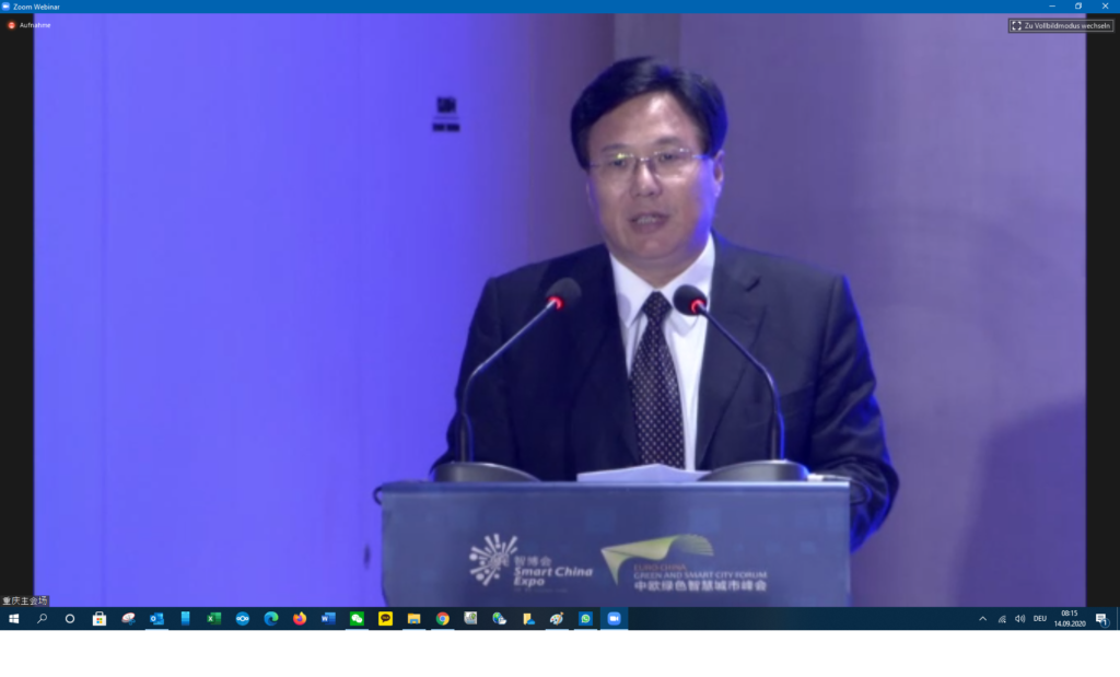 The European Union participated today at the workshop “EURO-CHINA Smart Cities, Facing Covid-19” held in Chongqing, China. The EU was represented by Ambassador Nicolas Chapuis, Head of the EU Delegation to China, as well as by Dr. Rudolf Niessler, Principal Advisor at DG REGIO of the European Commission. At the event, the European pilot cities of Barcelona and Mannheim were represented. Also, a smart city company from Rome (another IUC pilot city) was able to present its solutions towards COVID19 pandemics.
