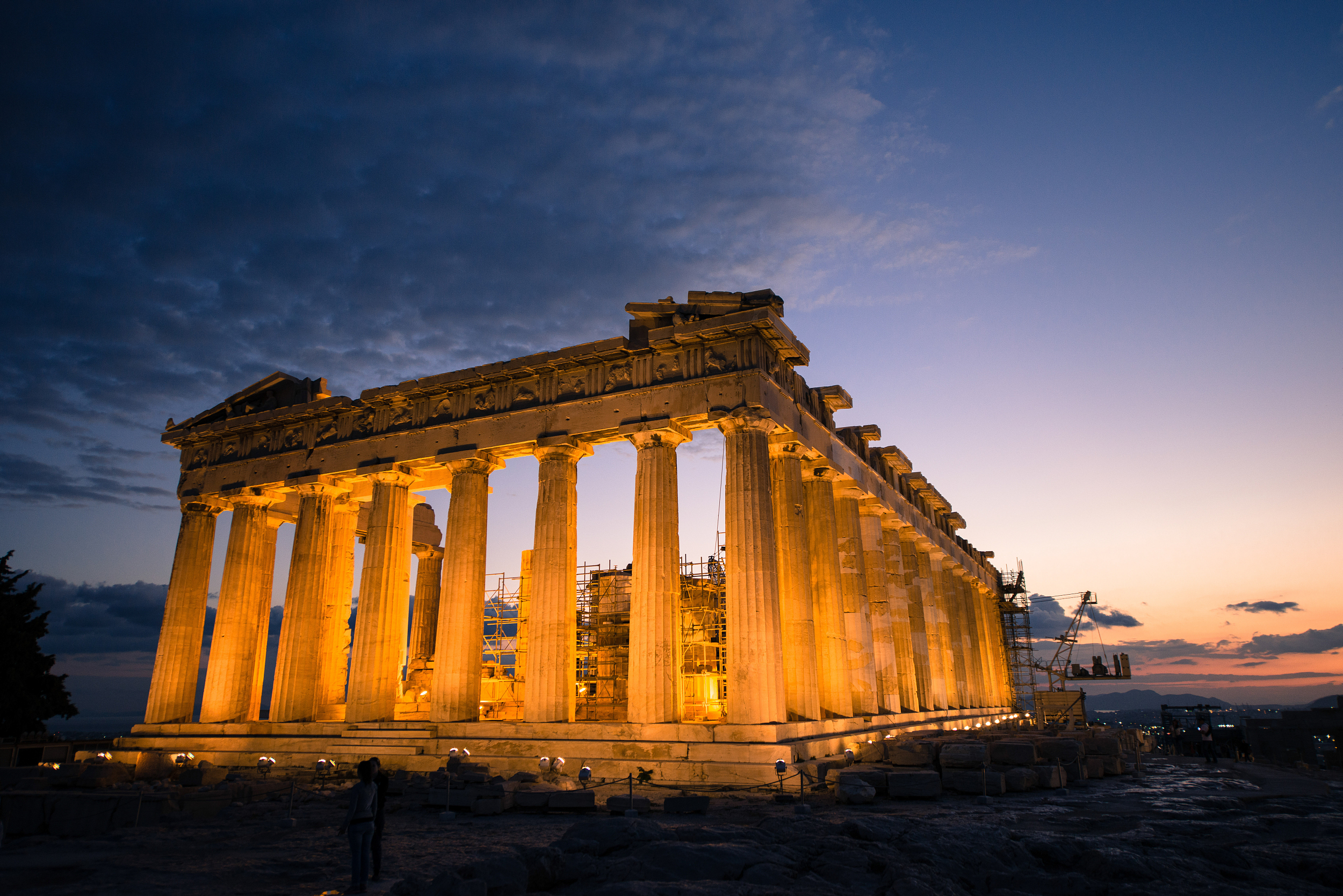 从雅典各个方向都可以看到耸立于雅典卫城山上顶端的帕特农神庙,据说远古这里曾供奉着高达10m的雅典娜神像,是举世闻名的古代七大奇观之一。帕特农神庙建于公元前447年,是著名建筑师和雕刻家菲迪亚斯的杰作。雅典政府正在对神殿进行保护性维修。伊瑞克提翁神庙位于帕特农神庙北面,建于公元前421年至405伊瑞克提翁神庙年。南面西端,用年轻女子雕像代替柱子,富有创意和美感。大英博物馆正面柱廊的爱奥尼克式柱比例尺度等严格参照雅典卫城上伊瑞克提翁神庙的柱式。